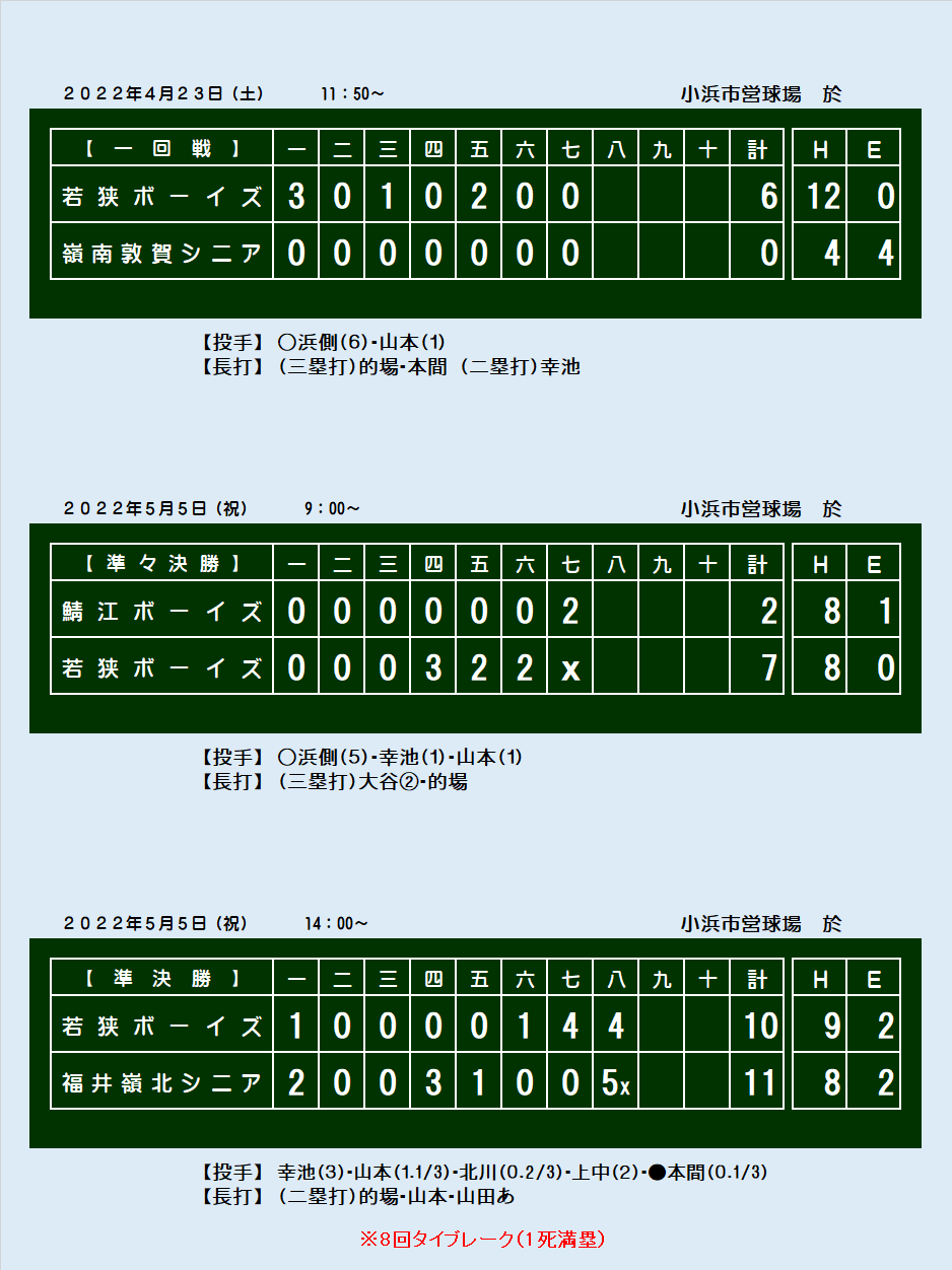 第6回福井県中学硬式野球大会(ジャイアンツカップ予選) スコアボード