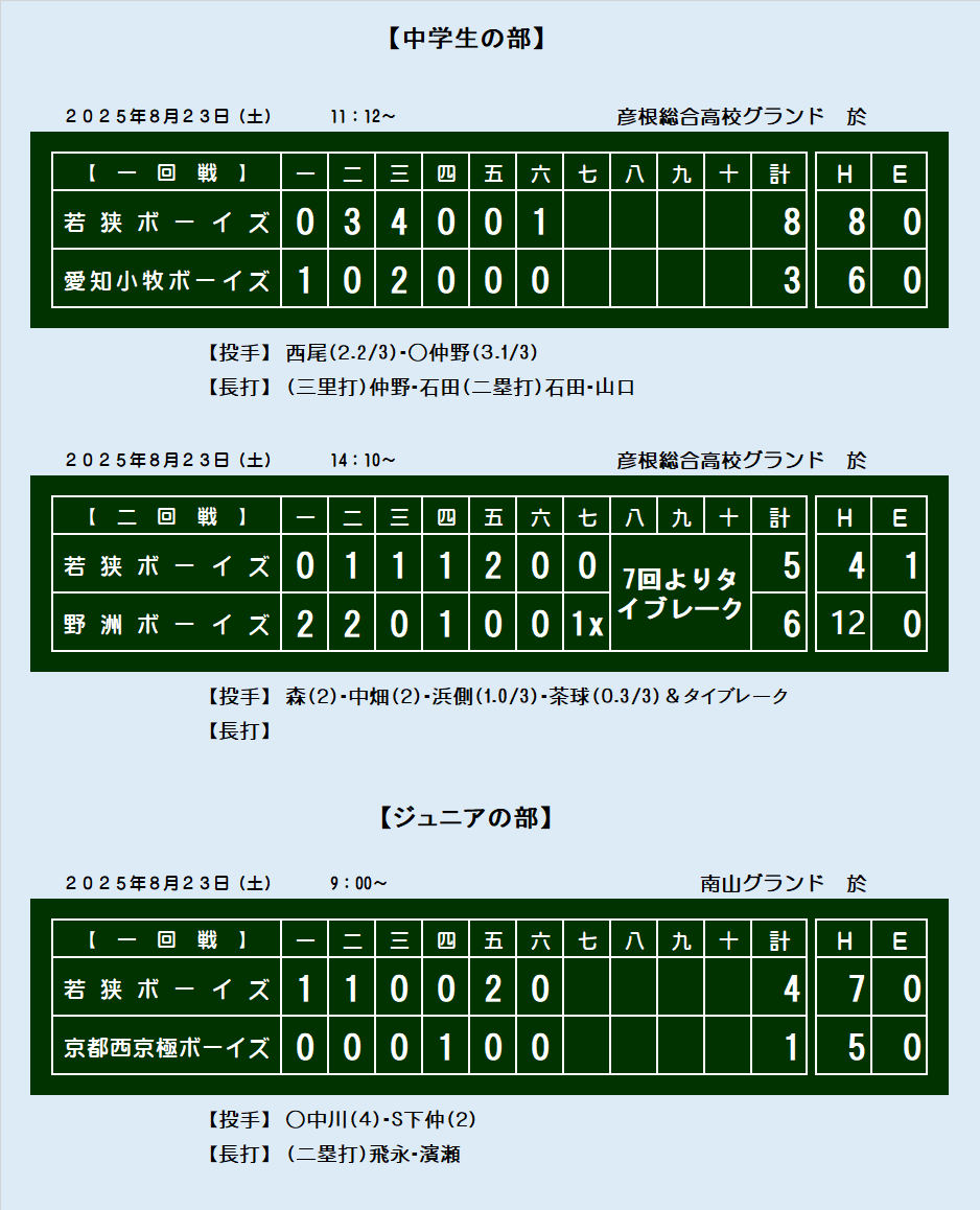 第36回滋賀大会 スコアボード