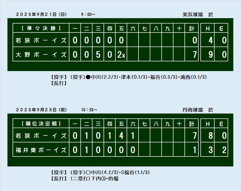 第16回福井県支部新人戦(2025.9/21.23)スコアボード