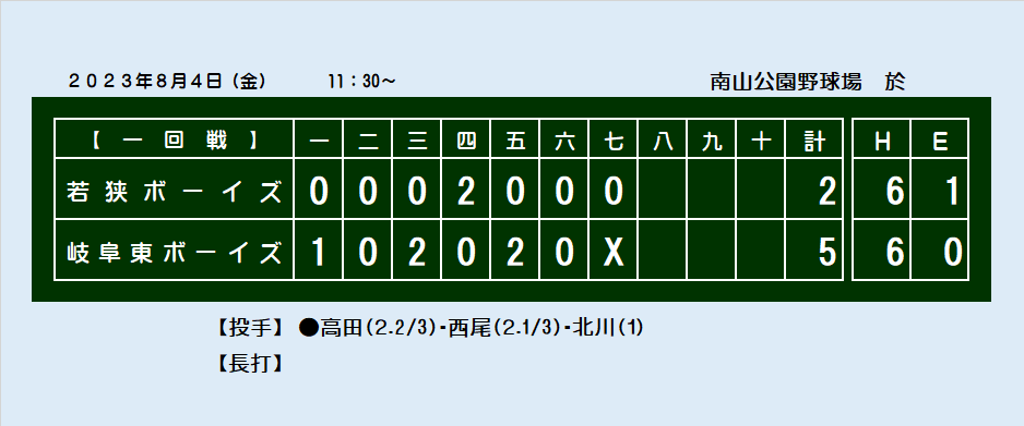 第33回選抜岐阜大会 スコアボード
