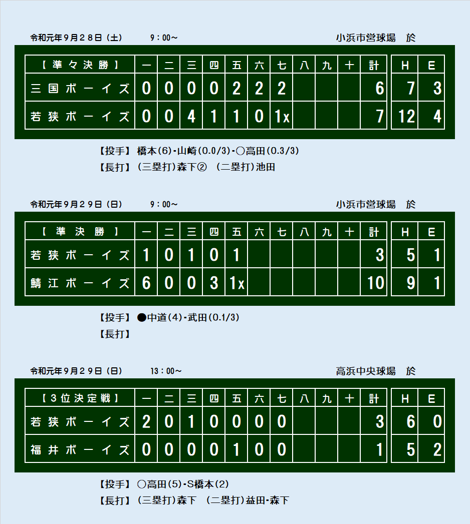 福井県支部新人戦スコアボード 2019