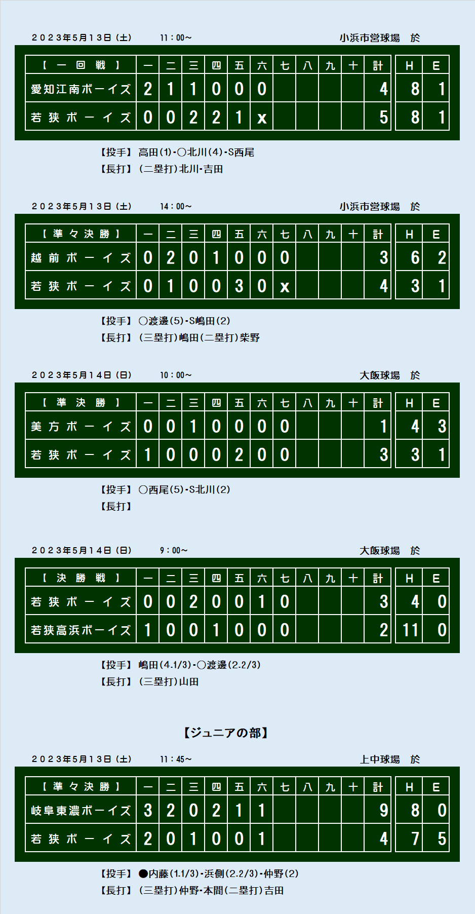 第13回 美方レインボー大会スコアボード