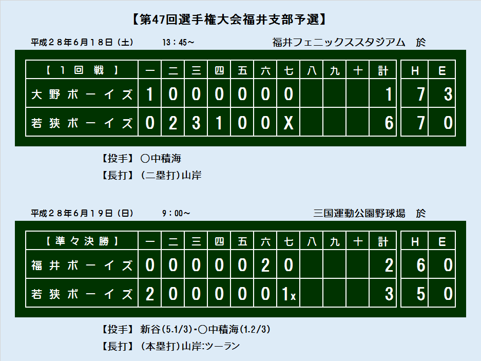 第47回選手権大会福井支部予選 スコアボード