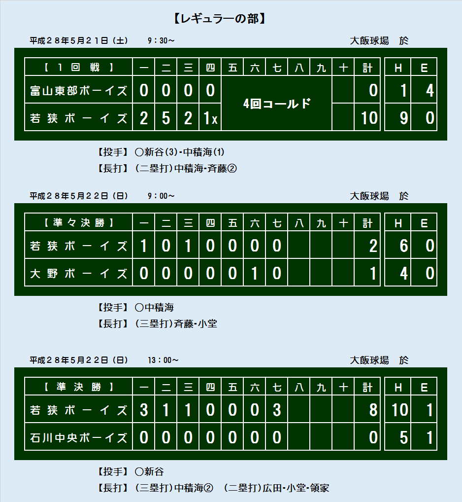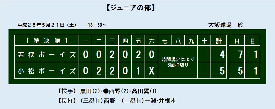 第18回 日本少年野球 若狭大会 スコアボード